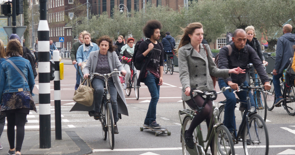 Duurzaam transport: Openbaar vervoer, fietsen of carpooling reduceert het aantal voertuigen op de weg en daarmee het verkeersgeluid.