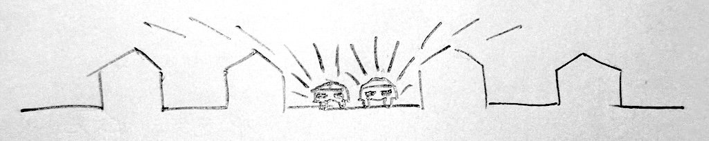 Het terugbuigen van geluidsgolven is veel minder het geval bij zadeldaken en mansardedaken (zie afbeelding) waar de schuine dakhelling de meeste geluidsgolven naar boven wegkaatsen (zie figuur a). Dat is goed waarneembaar bij een drukke weg met aan weerszijden een dubbele rij woningen met een zadeldak. Daar kan het op betrekkelijk korte afstand van de rumoerige weg opmerkelijk stil zijn (zie figuur b).