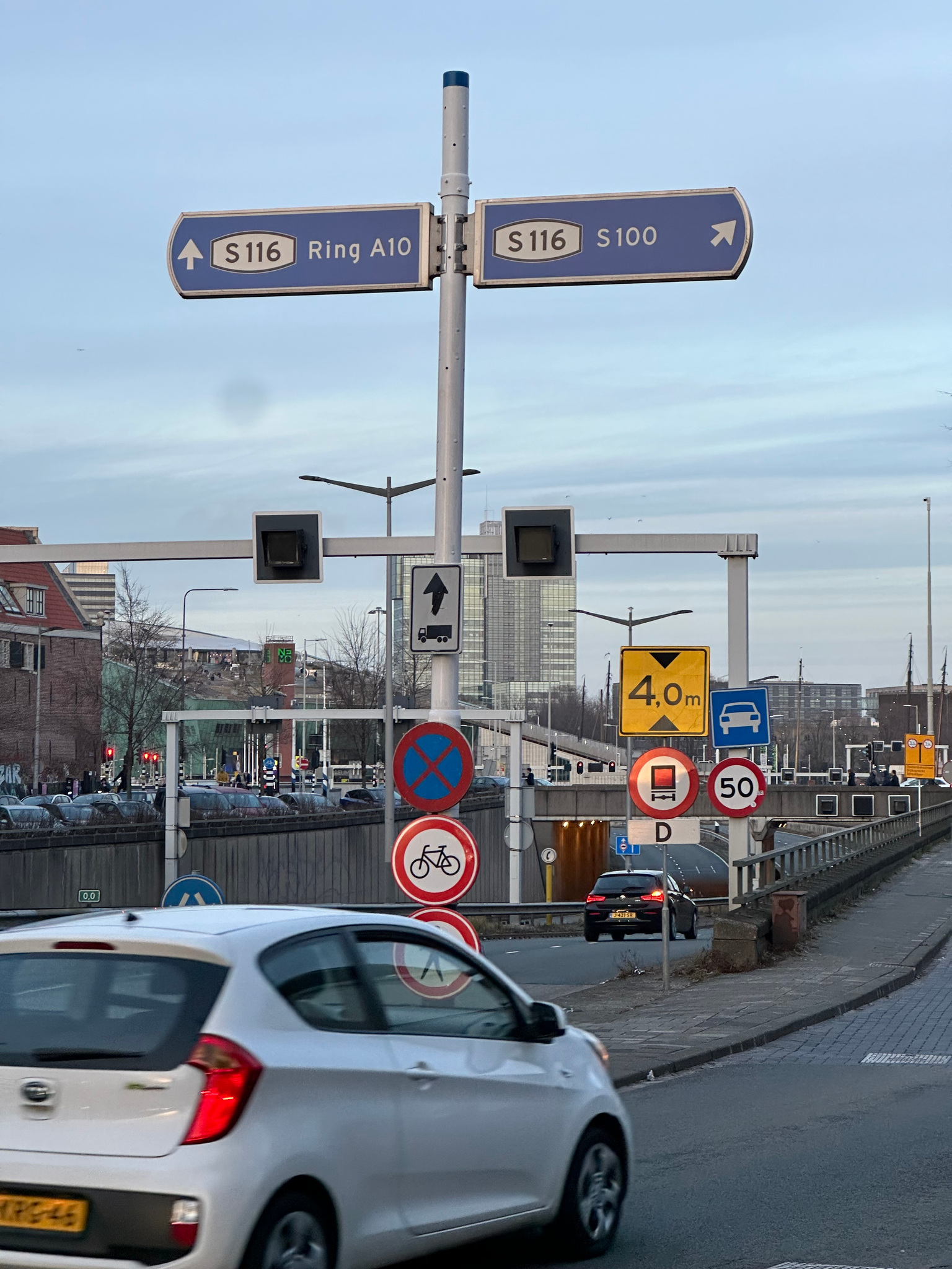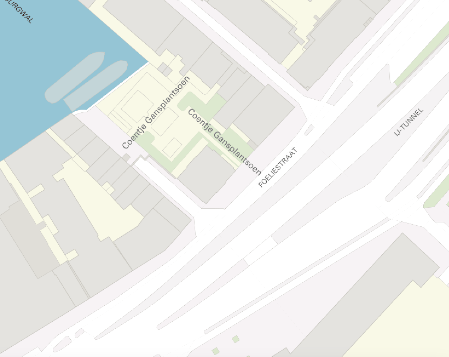 Precies waar de vangrail eindigt van de als snelweg vormgegeven inrit naar de IJtunnel is de ingang van het parkje.