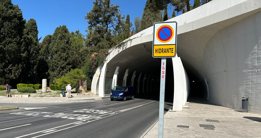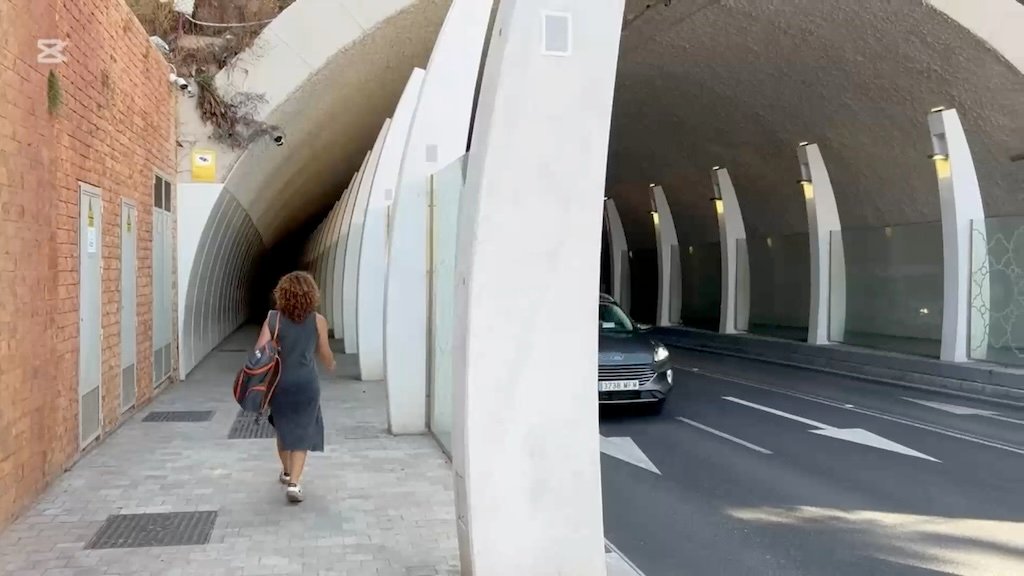 Wie in Malaga van de Plaza Jesús El Rico in de richting van de Paseo de Reding rijdt of loopt gaat daarbij door de Calle Túnel de la Alcazaba, een ongeveer 240 meter lange tunnel die onder de paleizen en het fort van het Alcazaba is aangelegd. Voetgangers en gemotoriseerd verkeer zijn van elkaar gescheiden door betonnen pilaren met daartussen doorzichtige plexiglazen wanden. In de pilaren zijn op zo’n 3,5 meter hoogte kleine speakers aangebracht waaruit muziek klinkt, variërend van licht klassiek (Vivaldi, Strauss, Beethoven) tot instrumentale pop-rock Muzak.
